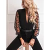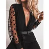 2020 women's blouse deep V-neck transparent polka dot mesh shirt Puff long sleeve top black shirt women's blouses party blouses