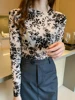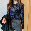 Korean Fashion Mesh Women Blouses Floral Office Lady Shirt and Blouse Long Sleeve Blusas Largas Plus Size XXXL Womens Sexy Tops