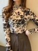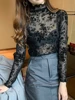 Korean Fashion Mesh Women Blouses Office Lady Shirt and Blouse Long Sleeve Floral Blusas Largas Loose Womens Sexy Tops