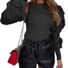 Women Ladies Puff Sleeve Tops Pullover Sweater Blouse Loose Jumper Ribbed Shirt Mesh Sleeve Slim Fit Black White Pink