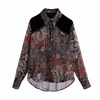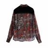 Women Velvet Splicing Vintage Printing Chiffon Shirts Female Long Sleeve Blouses Casual Lady Loose Tops Blusas S8292