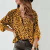 Casual Adjust Button Long Sleeve Female Blouse New Spring Sexy V Neck Leopard Shirt Blusa 2021 Elegant Women Loose Pullover Tops