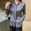 Satin Shirts Women Blouse Elegant Long Sleeve Turn-Down Collar Female Imitation Silk Blouses Lady Tops Blusas 2021 Spring Summer
