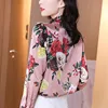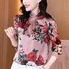 Korean Silk Blouse Women Satin Print Blouses Shirts Women Long Sleeve Blouse Tops Plus Size Woman Silk Print Shirt Woman Blouses