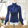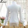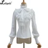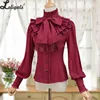 Vintage Women's Lolita Shirt Gothic Chiffon Ruffle Blouse Long Sleeve Blusas Black/White/Navy Blue/Burgundy