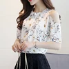 Summer Style 2021 Floral Shirt For Women Elegant Open Shoulder Blouses Chiffon Print Blusas Women Ete Plus Size Female Tops 85A6