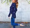 Summer Women Blue Chiffon Shirt Wave Point O Neck Lace Up Loose Long Sleeve Blouse Tops