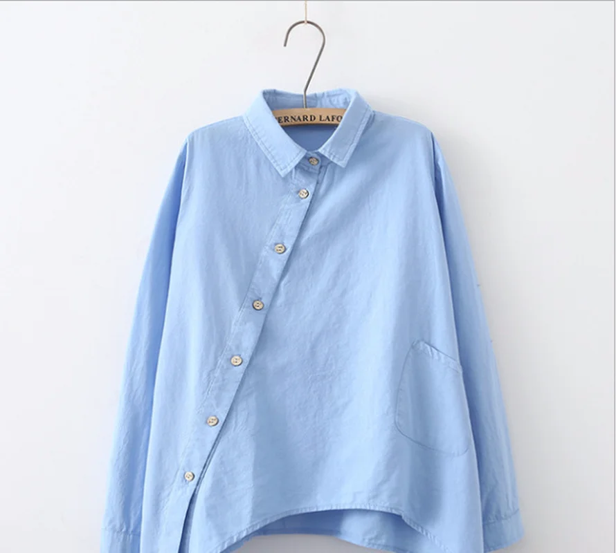 Women Spring Autumn Cotton Linen Blouse Shirts High Quality Loose Oblique Placket Long Sleeve Lapel Blusas Female Simple Shirts
