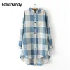 Women Cotton and Linen Blouses Plus Size Long Sleeve Shirt Casual Plaid Long Blouse 3XL KKFY2263oil