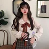 Bow Flannel Women Kawaii Shirt Ruffles Collar Long Sleeve Soft Warm Slim Shirts Blouses For Female Sweet Girl Corduroy Button