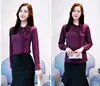 Women Chiffon Blouse Spring Long Sleeve Bow Shirt Solid Purple White Formal Fashion Elegant Office Wear Female Tops blusas