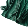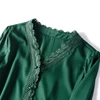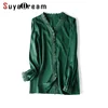SuyaDream Women Blouse 100% REAL SILK SATIN Long Sleeved Lace Blouses V neck 20202 Spring Autumn Office lady Green Chic Shirt
