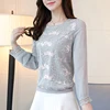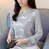 Women' s clothing Blouses shirt 2020 New Lace Women Tops O-neck Long Sleeve Embroidery Floral Lace Blusa Ladies Shirts 180E3