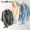 SuyaDream Women Summer Blouses 100%Real Silk Short Sleeved Bottom Ties Office Blouse Shirt 2020 Top