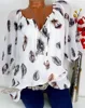 2019 Spring-Summer Hot Selling Loose-Fit Feather Printed V-neck Half Sleeved Shirt Chiffon Shirt