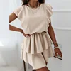 2021 Summer Fashion Elegant Round Neck Solid A-Line Dress Women Vintage Ruffles Design Party Dresses Office Lady Casual Dresses