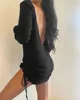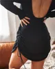 2021Sweater Dress Women Autumn Outfit Simple Solid-Color U-Neck Long-Sleeves Backless Knitting Drawstring Hemline Dress ForGirls