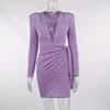 Women Bandage Shoulders Pad Foldse Dress 2021 Autumn V-Neck Long Sleve Lace Up Knitted Low Cut Bodycon Dresses Vestidoe