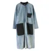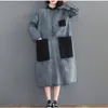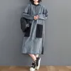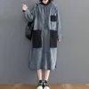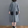 Denim Sundress Women Mid-Calf Dress Vintage Denim Vestido Jeans Maxi Casual Long Sleeve Pockets Loose Denim Shirt Dresses