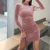 Women Autumn High Neck Pullover Velvet Dress Casual Fashion Long Sleeve Bodycon Dress Sexy Nightclub Elegant Dresses Slim Robe