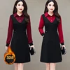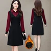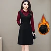 Autumn Winter Retro Liner Plus Fleece Shirt Collar Dress Women Elegant Vintage Slim Waist Party Dress Vestidos