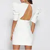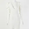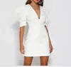 New Winter Women White Sexy Backless Bodycon Dress Puff Sleeve Deep V Neck Blazer Dress Vestidos Elegant Christmas Party Dresses