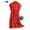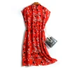 Silk Dress 2021 Women's Clothing New Red Printed Mulberry Silk Ol Style Cardigan Skirt Loose Fashion Dress