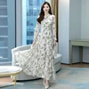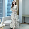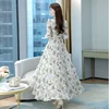 Robe Femme Printemps 2022 Vestido Floral Longo Chiffon Puff Sleeve Dress V-Neck Plus Size Ocasional Formales Dresses For Party