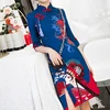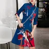 printed slim dress 2021 summer new cheongsam dress for women plus size chinese fashion plus size ruched dress