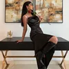 Ahagaga Sexy Dress Women Clubwear Swinging Collar Bandage Backless Solid Satin Dresses Women Casual Slim Elegant Female Vestido