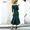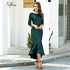 Spakle Dark Green Bodycon Dress Sequined 3/4 Sleeve O-Neck Draped Mermaid Women Dress Ladies Elegant Party Dress Ropa Mujer 2020