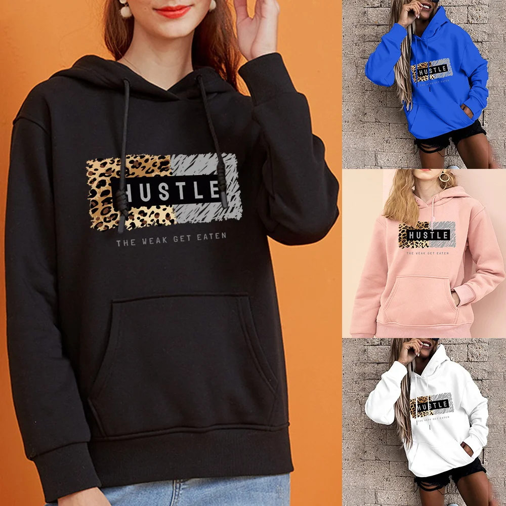 Hoodie Women's Fashion Loose Big Pocket Long Sleeve Pullover Leopard Print Sweatshirt Top Girls Hoodies Pullover Sweatshirt