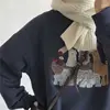 Autumn winter sweatshirt Korean retro loose academy cartoon embroidery stitching double-layer collar thick o-neck pullover women