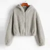 Oversize solid zipper long sleeve fluffy Plush Sweatshirt Hoodie Top Fashion Women's Sweatshirt