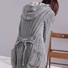 Plaid Women's Cardigan Cardigan Twist Knitted Women Color Thickened Hooded Slim Hooded Up Coat Long Solid Knitted Sweater Lace P