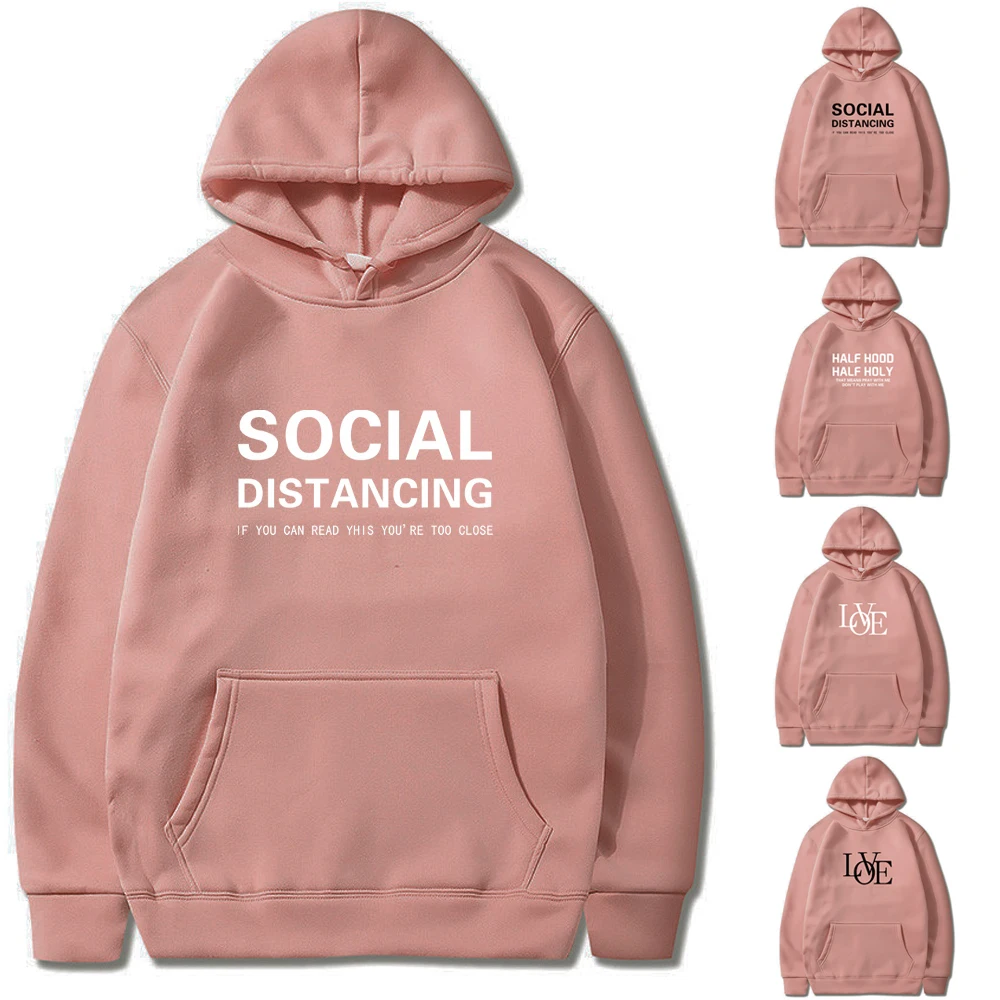 2022 Loose Hooded Hoodies Women and Men All-match Warm Sweatshirts with Pocket Text Printed Fashion Pullovers Streetwear Clothes