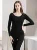 FAKUNTN Pure Color Women Thermal Underwear Round Collar Beige Warm Winter Legging Tights Tracksuits Held Sexy Inside Suits