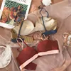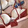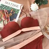 Sexy half cup Latex underwear women no steel ring no trace bridal small chest gathered lingerie suit smooth bra and panty set