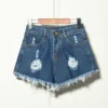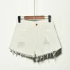 Summer Korean Women Fat Mm Denim Shorts 2021 Hole Stretch Large Size Jeans 938 White High Waisted Office Lady