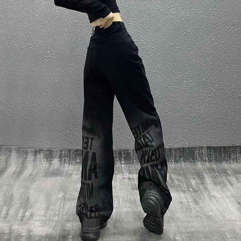 HOUZHOU Gothic Streetwear Women Jeans Autumn New 2021 Harajuku Vintage High Waist Denim Pants Women Grunge Loose Trousers Female