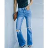 Flared Jeans Women 2021 fashion Blue Mid-Waist Denim Pants Washed Bootcut Trousers Women's casual Skinny Jeans