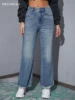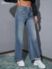 Jeans Women Straight Ripped Pants Fashion High Waist 90S Denim Wash Loose Trousers Cotton Baggy Jeans Women Wide Leg Jean Pants