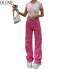 OLOME new style European American loose street hot girl high waist pants 2021 fashion slim retro straight wide leg jeans women