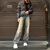 WeiYao Vintage Jeans Women 2021 New Streetwear Cargo Pants Korean Style Retro Mid Waist Straight y2k Denim Trousers Female