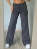 Weekeep Vintage Baggy Low Waist Women Pants Casual Metal Buckle Belt Pocket Patchwork Straight Cargo Jeans Harajuku Femme Street