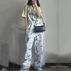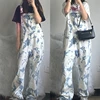 Plus size 5XL 2021 New Loose Jumpsuit Romper Female Dye Tie Printed Wide Leg Overalls Pant Casual Playsuit