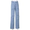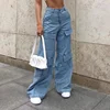 Oversized Retro Mop Cowboy Pants Patchwork Wide-leg Mom Jeans Big Pocket Overalls High Waisted Wide Leg Jeans Patchwork Jeans