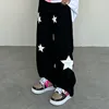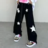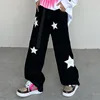 Vintage Black Jeans Women New Korean White Stars Pattern Overzied Loose Woman Pants Streetwear Mid Waist Loose Wide Leg Trousers