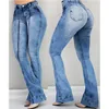 Women High Waist Ripped Flared Jeans Ladies Sexy Casual Wide Leg Jeans Trousers Elegant Vintage Bell Bottom Skinny Denim Pants