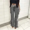 2021 Autumn Winter New Fashion Street Personality Womens Jeans High Waist Tie Dye Tassel Design Casual Women Long Trousers
